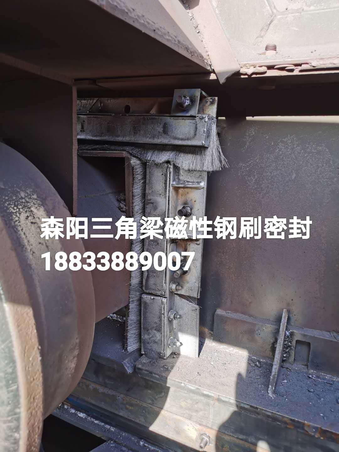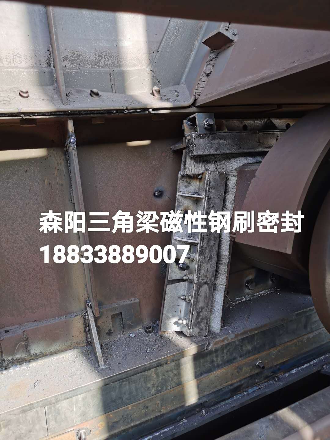 環(huán)冷機三角粱磁性鋼刷式密封,彈性結構自動(dòng)調節,磁體吸附含鐵物料和多層鋼刷形成柔性密封層,密封效果好,耐用性好 |